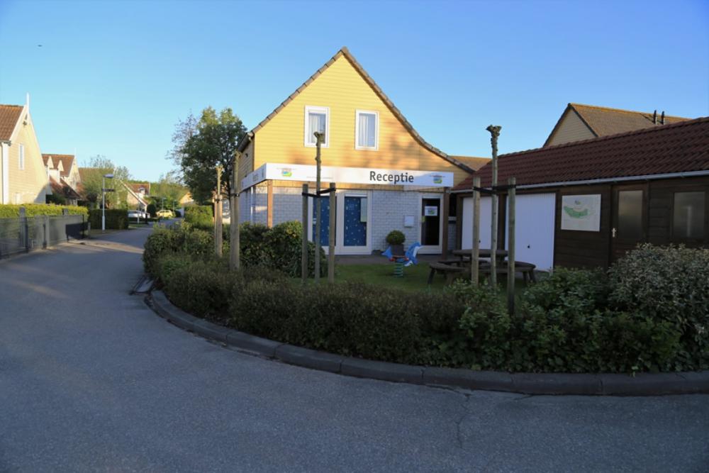 De receptie van Villapark de Oesterbaai ligt centraal op het park.